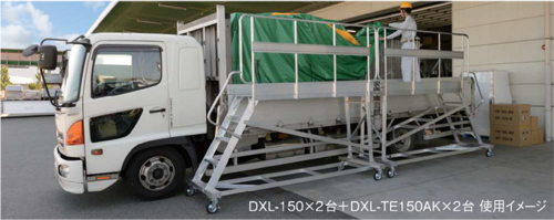 一方、「連結式大型作業台」(DXL)は手すりのバリエーションが選べるとともに、2基連結することで最大4.5mの足場を確保することが可能となり、荷役作業を安全に効率よく行うことができます。また洗車作業やキャビンのメンテナンスにも活用できる点でもご好評をいただいています。