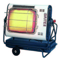 整備工場内を効果的に温める暖房器具の定番としておすすめが、熱出力やエネルギー効率など、様々な機能を備えるジェットヒーターです。中でも、ジェットヒーターの「ブライトⅡ」(HR330H)は、熱出力は38.8~28.1kWで5段階燃焼調節を可能とし、66坪のコンクリート建造物に対応します。燃料は灯油を使用し、タンク容量(40L)満タン時で10時間から13時間の連続使用が可能です。ヒーター下部にキャスターがついているため、台車に載せることなく移動も簡単。耐震や過熱防止など安全装置が働いた際は警報モニターでお知らせするなど安全性にも優れています。なお、広範囲で暖房効果を高める首振りタイプ(HRS330)もラインナップしています。