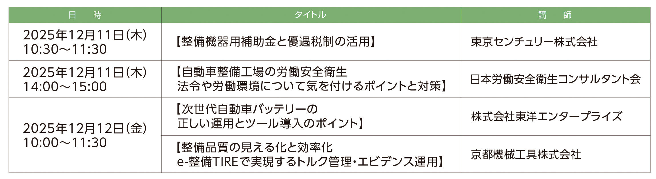 ANZEN は 12 月 11 日(木)、12 日(金)の 2 日間、愛知県名古屋市熱田区の名古屋市 工業研究所にて ANZEN 整備機器展示会 2025 を開催します。メカニックが働く環境を整えることは人材の確保と定着率の向上に大きく寄与します。今回の展示会では整備作業場の安全と安心を形成する最新の整備機器を多数展示するとともに、各種、話題のセミナーを準備しております。安全と安心の整備がお客様満足のさらなる向上につながります。是非会場に足をお運びください。![]()