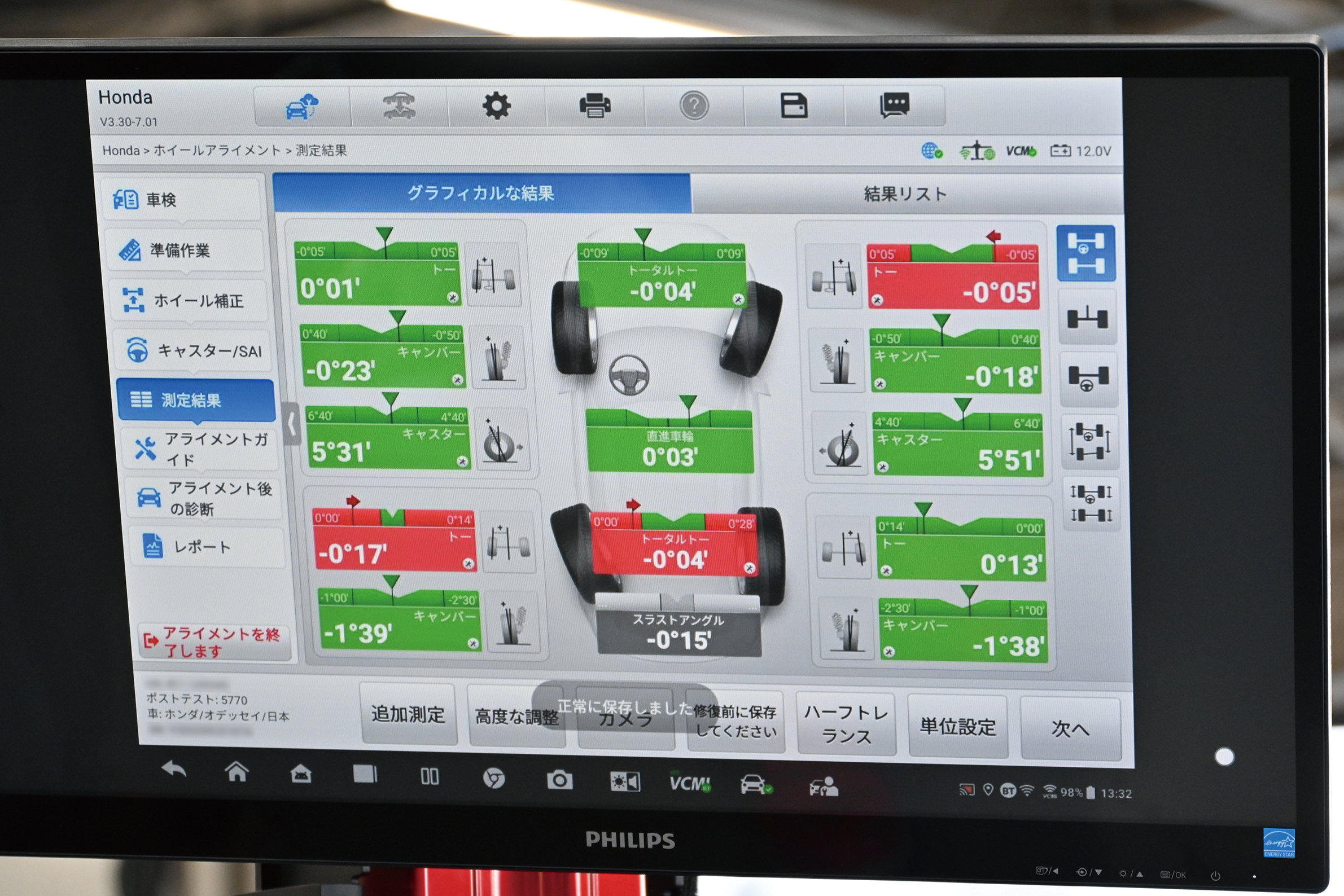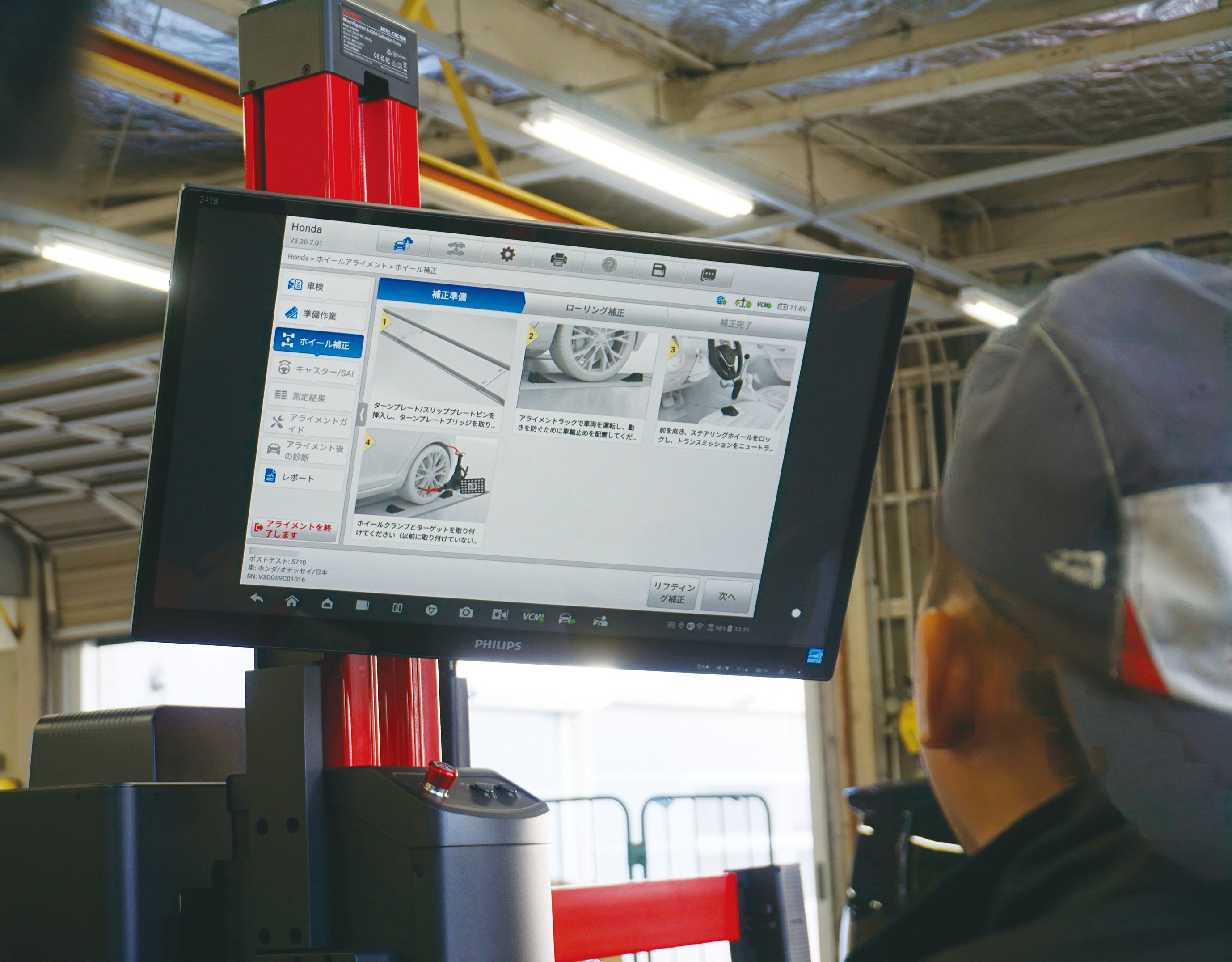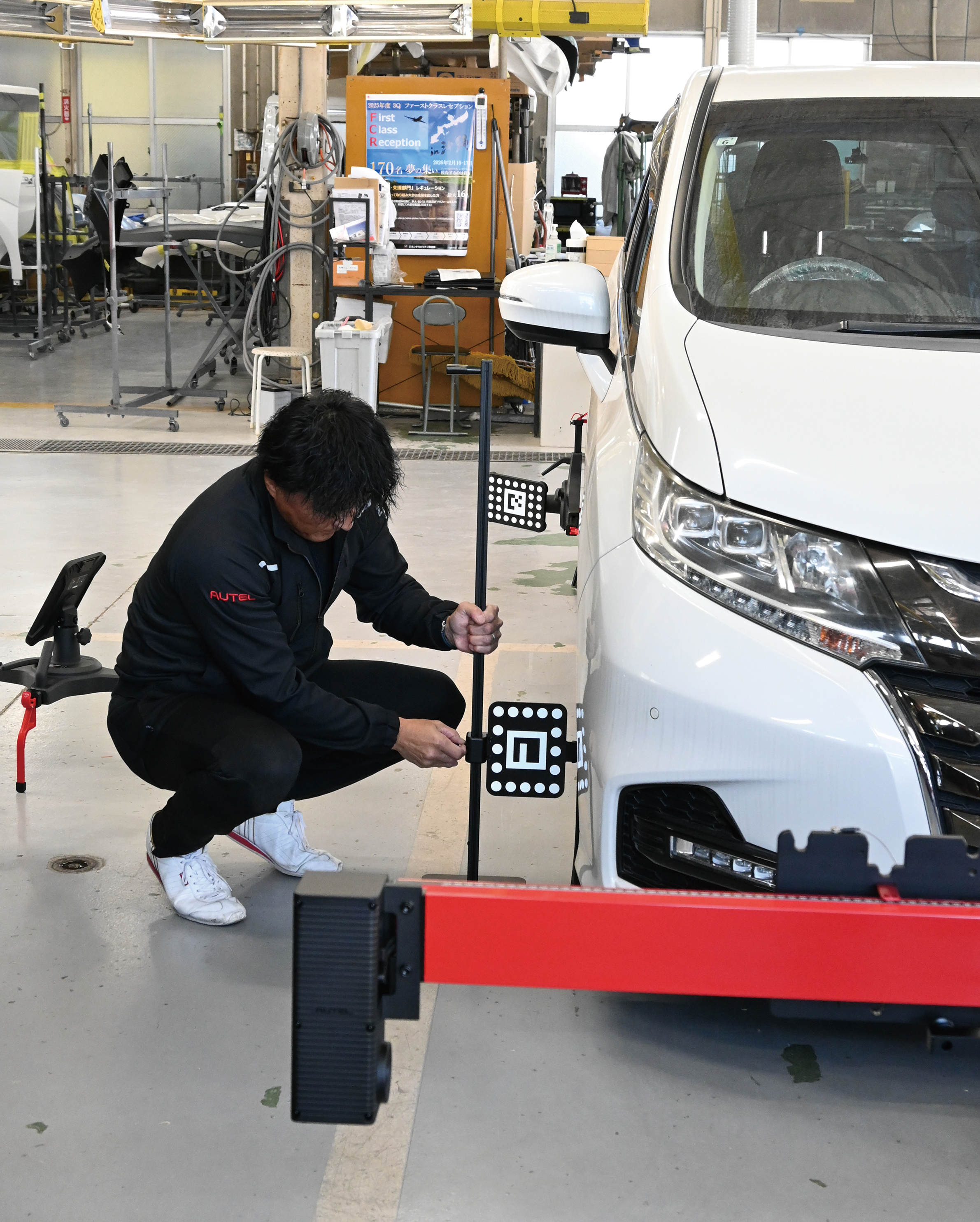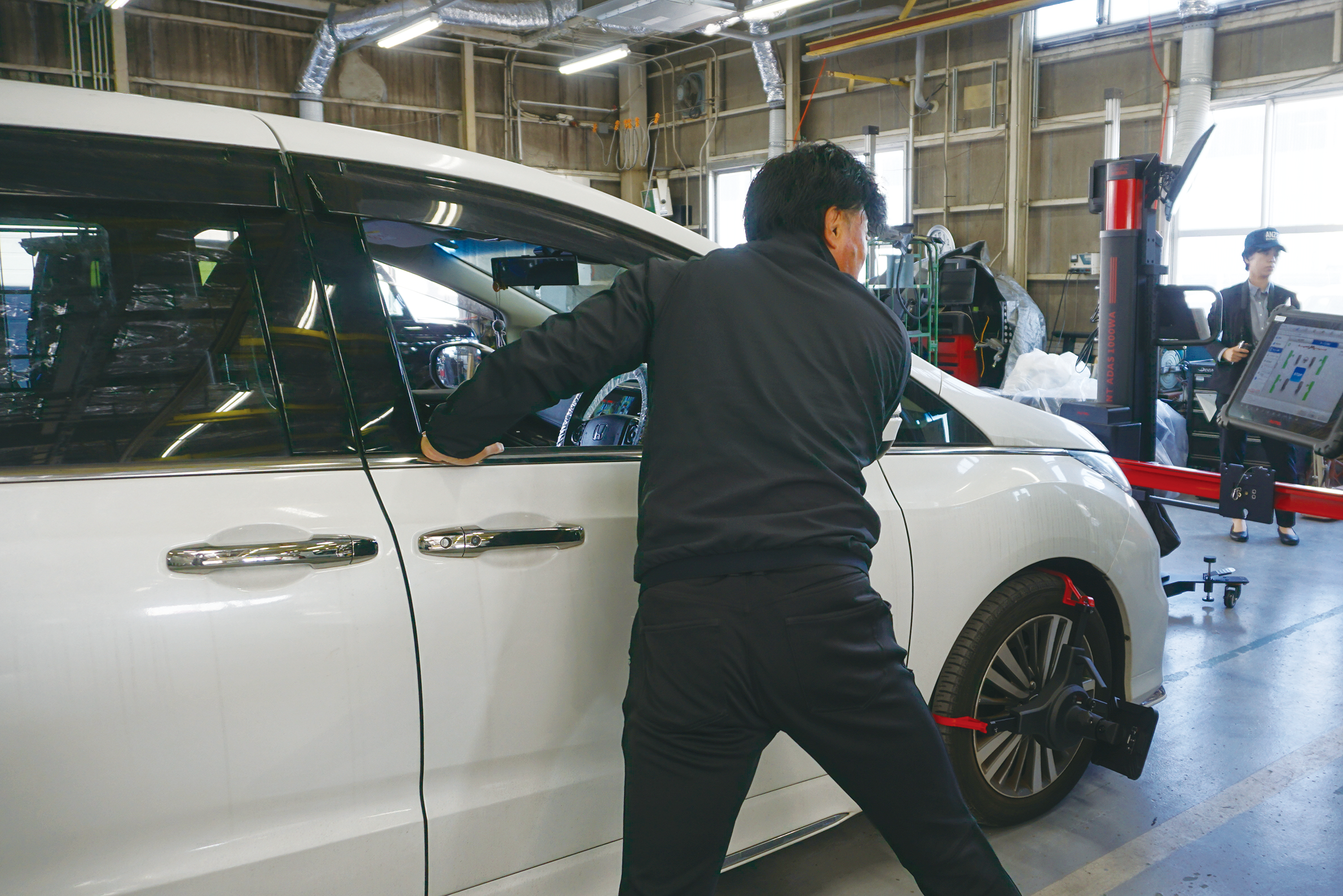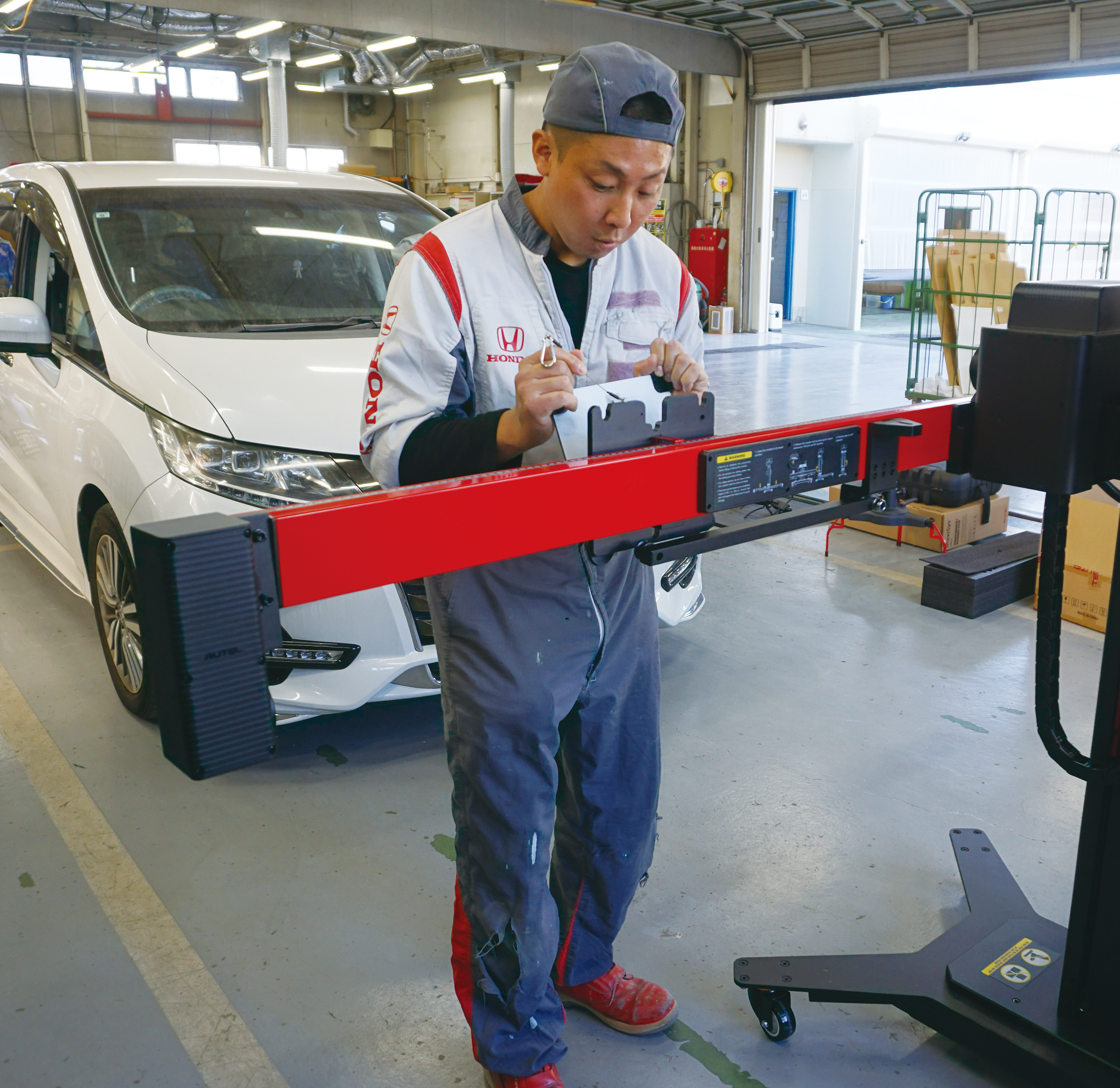 株式会社ホンダモビリティ南関東 ボディサービスセンター白井の斎木修一工場長は「ホイールアライメント計測作業でリフトアップが不要のため、作業の大幅な時短が望めます。弊社はアライメントの需要が高く、助かります」との感想を寄せてくれました。