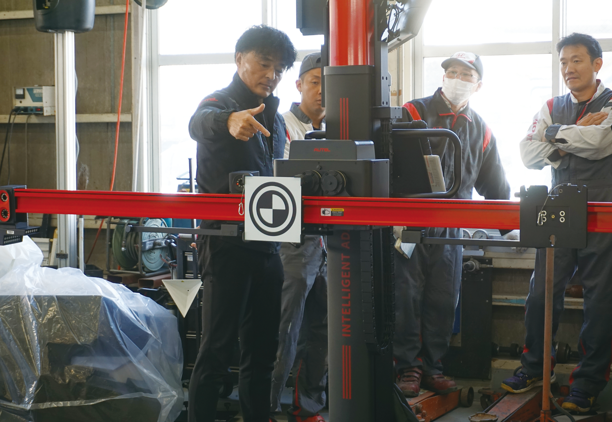 今回の実機デモではマルチパーパスカメラとマルチビューカメラシステムのエーミングをそれぞれ実施しました。斎木工場長は「エーミングの課題は準備にかかる時間です。ガイダンスに沿って準備ができることで作業の効率化が見込めます。特に難儀なマルチビューカメラシステムのエーミング位置出し作業を素早くできたので、作業性が抜群にいいです」と語ってくれました。