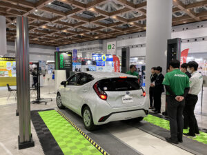 完成車のタイヤ取付角度(トー角、キャンバー角)を測定し、調整するための装置