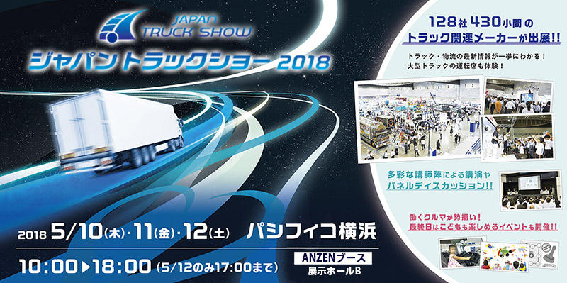 2018年5月10日、11日、12日にて開催される、トラック関連業界最大の展示会《ジャパントラックショー2018》に出展いたします。